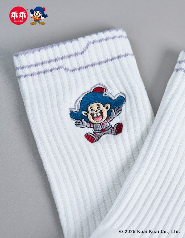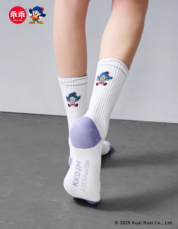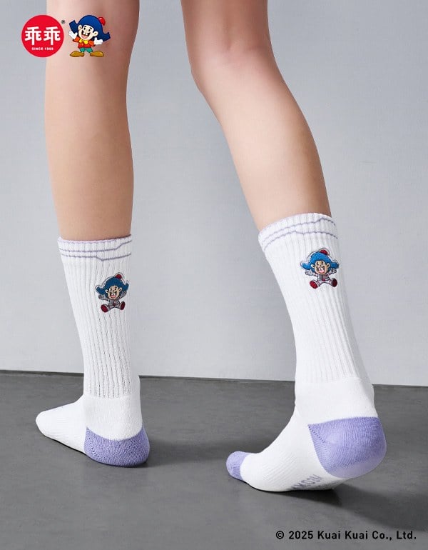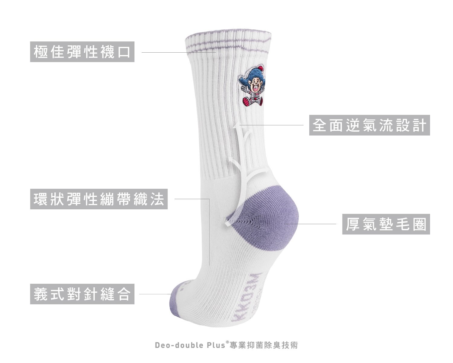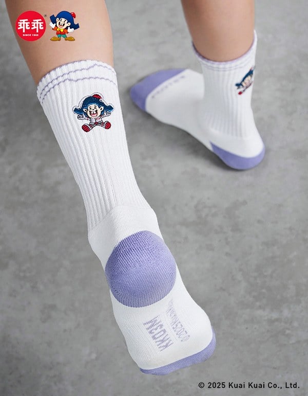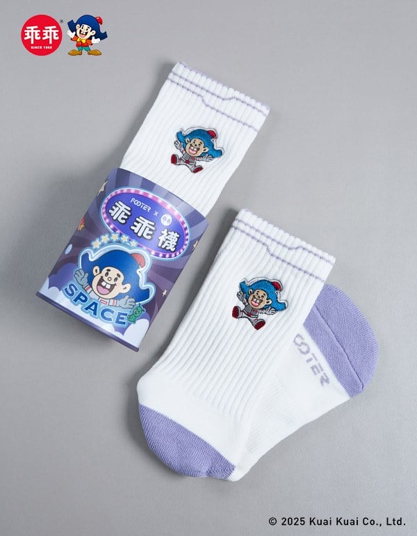 【FOOTERx乖乖】聯名機能襪,限量鐵罐收藏版,白色襪身搭配紫色細節點綴,演繹夢幻的太空高級感。機能襪實穿又百搭,質感鐵罐可收納或當存錢筒,更具珍藏價值,限量發售。