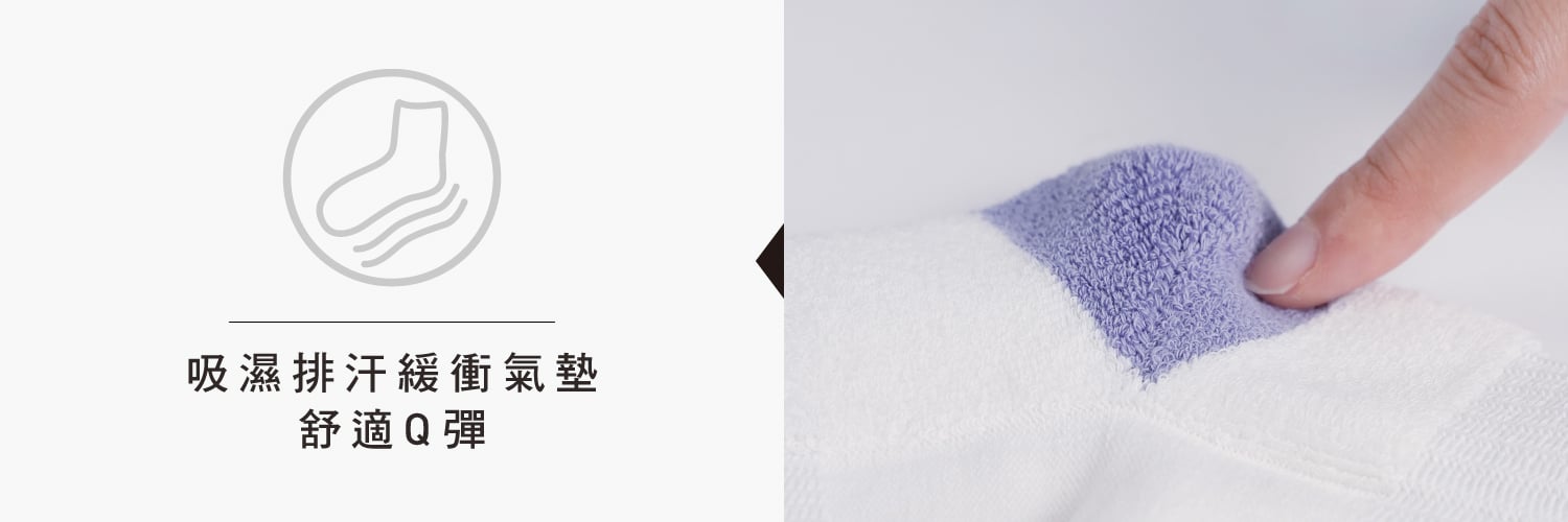 ・吸震緩衝氣墊毛圈,厚實Q彈,完整舒適包覆