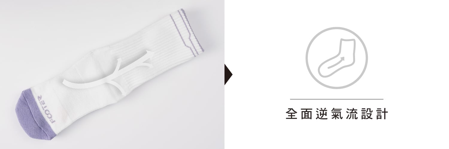 Footer 襪款的氣墊毛圈厚度目前分三種,分別為「全薄」、「輕氣墊」、「厚氣墊」,襪款厚度與吸濕排汗程度相互影響,請依個人汗量及穿著情境選擇,建議汗量較大或需長期久站者挑選「厚氣墊」襪款,吸濕排汗效果可達到您的穿著需求且讓足部呼吸不悶熱;汗量相對較小的穿著者可參考「輕氣墊」的襪款;而較不習慣有氣墊設計之穿著者即可挑選「全薄」的襪款。